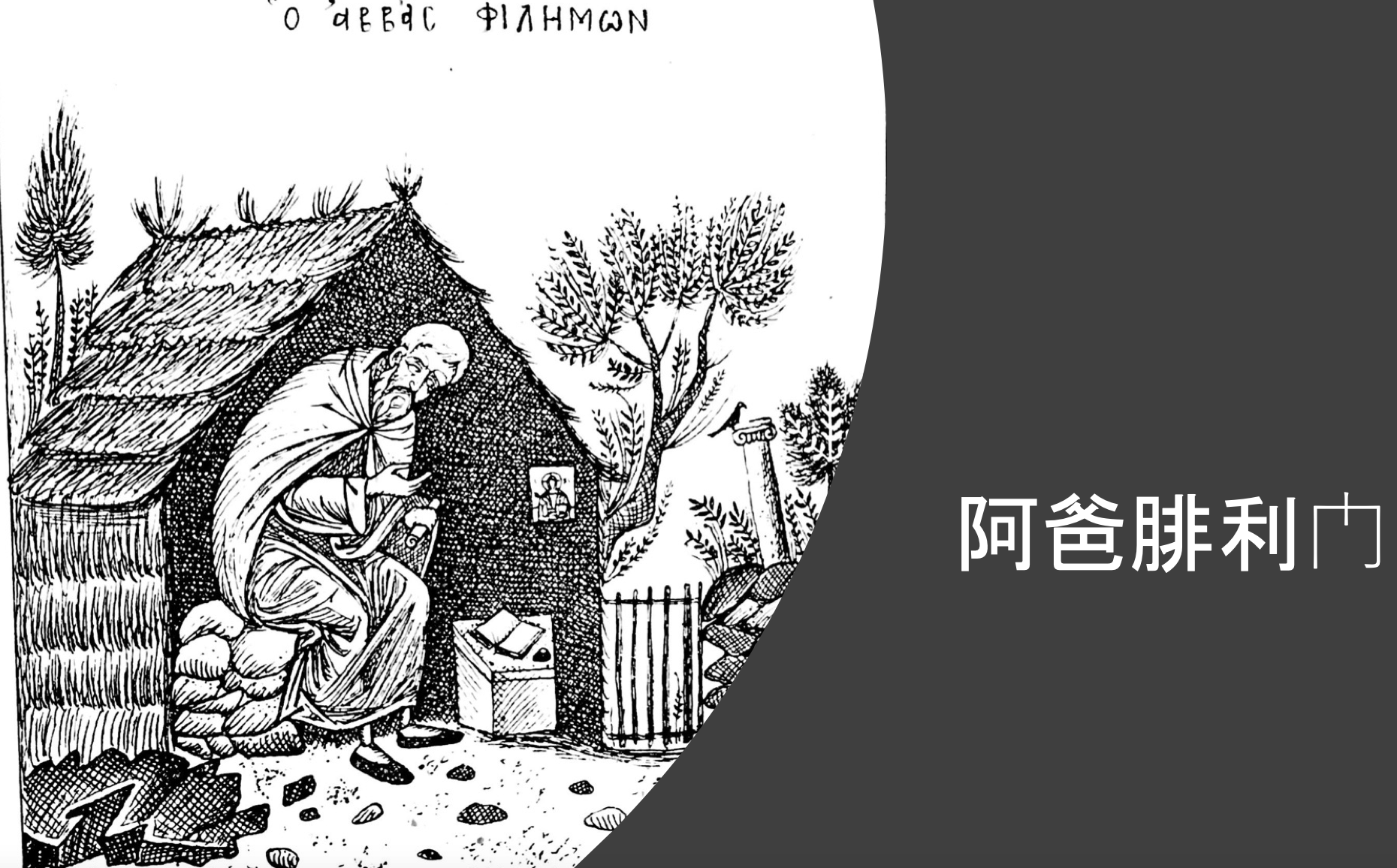 译者按:阿爸腓利门传记乃他的弟子所写。关于腓利门的生平知之甚少。根据传记,他生活在埃及,是一位神父。学界认为他生活在罗马帝国时期,因此传记写于6世纪,在阿拉伯入侵之前。此外腓利门引用了耶稣祷文的完整形式,似乎是提及耶稣祷文的最早记录。文中亦可看出巴西尔对腓利门的影响。