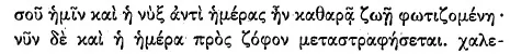- 因着你,昔日黑夜曾为你洁净之生命照亮,以致在我们[眼中]胜过白昼;